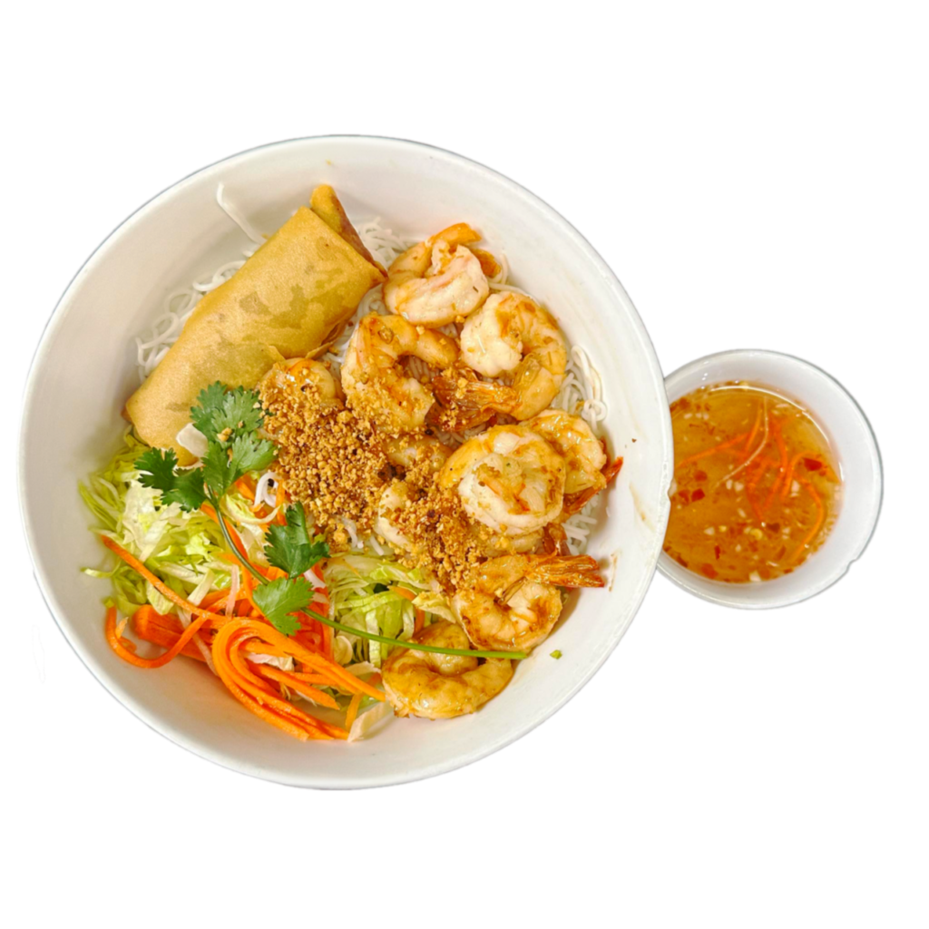 Choice of meat served with a eggroll on a bed of lettuce and rice noodle, peanut & served with fish sauce