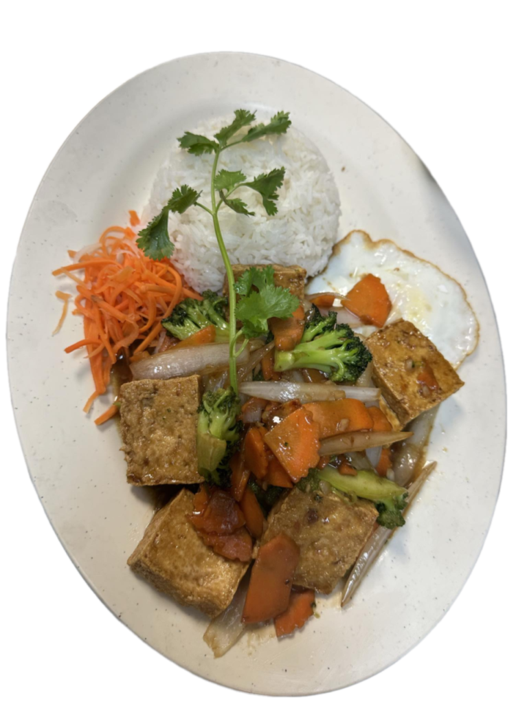 Your choice of meat stir fried with noodle, onion, carrot, and broccoli